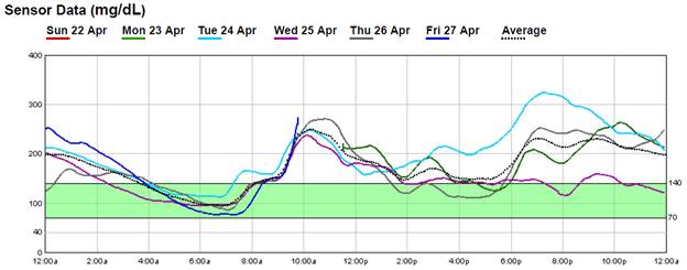 We started using CGMS way back in 2005. Initially it was only a research tool but gradually emerged as a routine in clinical diabetes care. A conventional glucometer used by a patient will provide 4-8 sugar readings per day and will require finger pricks for the same. In contrast, the Continuous Glucose Monitoring device will provide close to 300 readings in 24 hours and the device can be worn continuously over a period of 1 week to several weeks which will provide trends in blood glucose in the form of graphs. The major advantage of a CGM is its accuracy to graphically demonstrate the presence of dangerously low sugars during the time the patient is sleeping; a finding of significant clinical value since hypoglycaemia can predispose to arrhythmias and even acute coronary events.